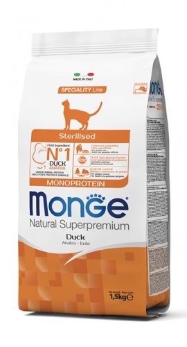 Monge Sterilised Anatra � un alimento completo e bilanciato per gatti adulti sterilizzati.