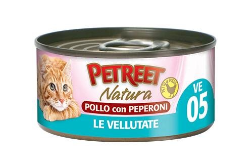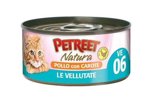 Il cibo umido per gatti adulti Le Vellutate di Petreet � un delizioso alimento complementare caratterizzato dalla sua particolare consistenza cremosa, adatto anche a gatti con problemi di masticazione. Con preziose vitamine A ed E e minerali essenziali, contribuisce a mantenere forte e in forma il tuo micio, garantendogli un pranzetto appetitoso e pieno di sapori ogni giorno.