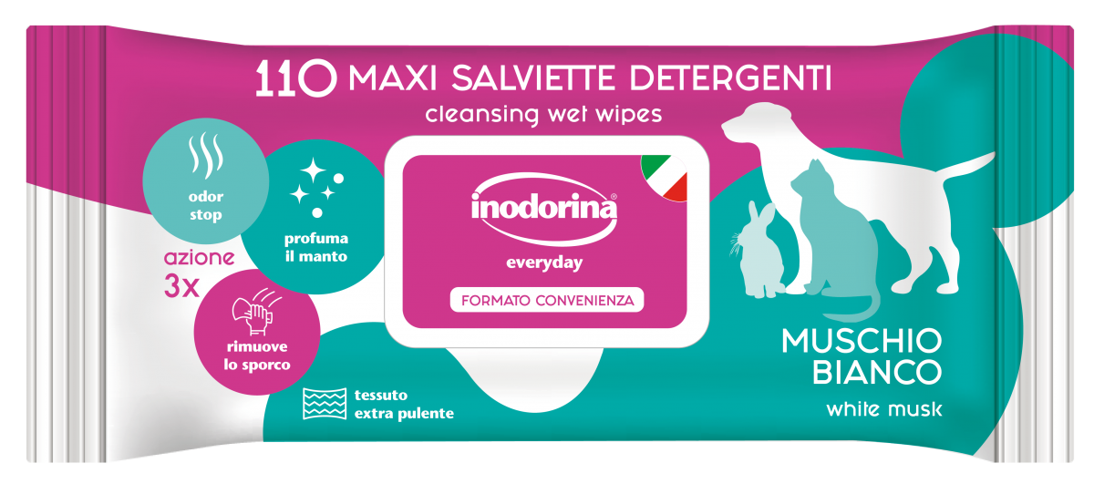 Le salviette Inodorina Refresh sono utilissime nei momenti di vita quotidiana con il nostro animale: prima di un viaggio in auto e al termine di una passeggiata o di una gita all’aperto. Inodorina Refresh è particolarmente indicata al momento del rientro in casa nei giorni di pioggia perché neutralizza le molecole di cattivo odore sul manto bagnato, lasciando il pelo deterso e profumato.