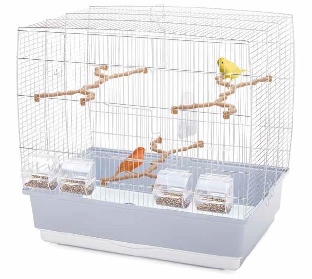 Specifica per canarini e piccoli esotici, Irene 4 � una gabbia dalla forma tradizionale a base rettangolare, di dimensioni medie. Irene 4 � dotata di maniglia per il trasporto, di pratico cassetto sul fondo per una pulizia veloce e di una apertura frontale per accedere facilmente alla gabbia. Inoltre � corredata di accessori indispensabili come le quattro mangiatoie Mia, il beverino Tweety 100, l�altalena gioco e tre posatoi a forma di ramo.