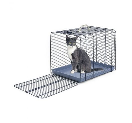 Per portare con te il tuo felino, in un breve o lungo viaggio o per le esposizioni feline, il Trasporto gatto � perfetto. Questo trasportino � costituito da una rete metallica verniciata di colore blu e da un comodo fondo in plastica robusta rimovibile, per pulirlo facilmente. L�apertura frontale con gancio di sicurezza ti permette di gestire il tuo gatto in totale tranquillit�. Facilmente trasportabile grazie alla maniglia sulla parte superiore. Disponibile in due misure a seconda della dimensione del tuo micio.