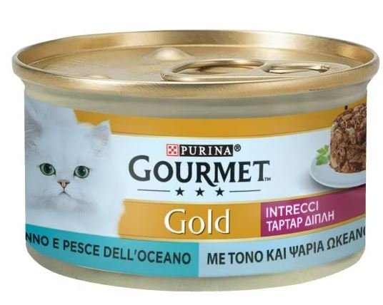 GOURMET Gold Intrecci di Gusto è preparato con pezzettini finemente sminuzzati di manzo e pollo, salmone e merluzzo, o altre varietà attentamente selezionate, insaporite con cura da un tocco di salsa: prelibate creazioni dal duplice gusto, per deliziare il tuo gatto ad ogni assaggio. Tutte le ricette GOURMET Gold non contengono coloranti, conservanti e aromi artificiali aggiunti.