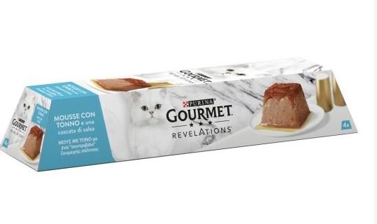Ogni delicata e raffinata mousse � preparata con ingredienti selezionati di qualit� e guarnita da una cascata di squisita salsa, per offrire al tuo gatto un�esperienza di gusto senza paragoni. GOURMET� REVELATIONS�: una sublime prelibatezza, raffinatamente servita.