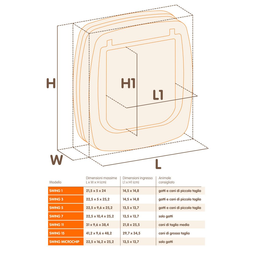 Per i vostri gatti Ferplast ha ideato le gattaiole Swing nei modelli 1,3, 5 e 7, tutte disponibili in due varianti colore, bianco e marrone. Possono adattarsi a qualsiasi supporto, porte di legno, metallo, vetro e anche alle pareti in muratura grazie ad un pratico tunnel che viene fornito unitamente al modello Swing 5 e 7 oppure come accessorio.
