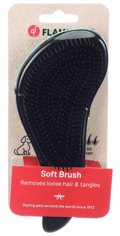 Con setole flessibili e ricurve che aiutano a districare i nodi del manto ed a rimuovere lo sporco ed il pelo morto.