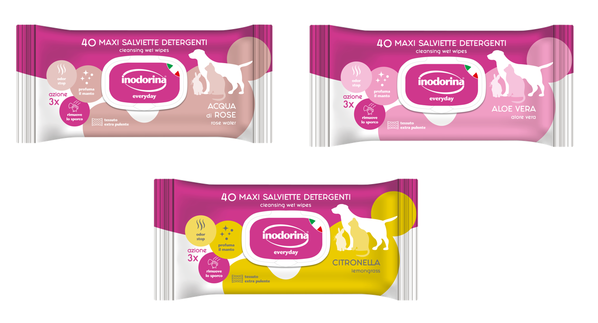 Le salviette Inodorina Refresh sono utilissime nei momenti di vita quotidiana con il nostro animale: prima di un viaggio in auto e al termine di una passeggiata o di una gita all’aperto. Inodorina Refresh è particolarmente indicata al momento del rientro in casa nei giorni di pioggia perché neutralizza le molecole di cattivo odore sul manto bagnato, lasciando il pelo deterso e profumato.