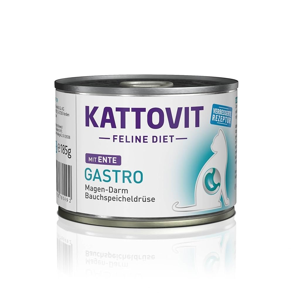 Kattovit Feline Diet GASTRO è un alimento umido dietetico sviluppato per gatti con disturbi gastrointestinali acuti o cronici, intolleranze alimentari o problemi digestivi. Grazie alla sua composizione altamente digeribile e a basso contenuto di grassi, aiuta a ridurre il carico sul tratto gastrointestinale, favorendo una digestione più efficace e delicata.