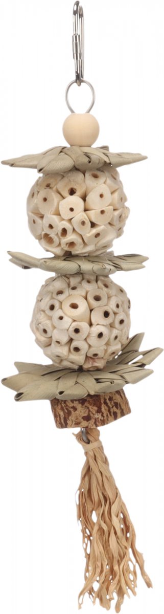 Il giocattolo per parrocchetti Cas è un accessorio naturale pensato per stimolare l’attività e la curiosità del tuo pappagallino. Grazie alla combinazione di materiali vegetali e piccoli elementi da esplorare, offre ore di divertimento da rosicchiare e manipolare all’interno della gabbia.