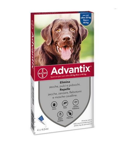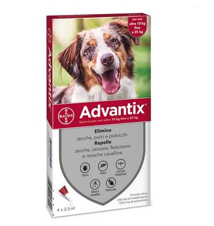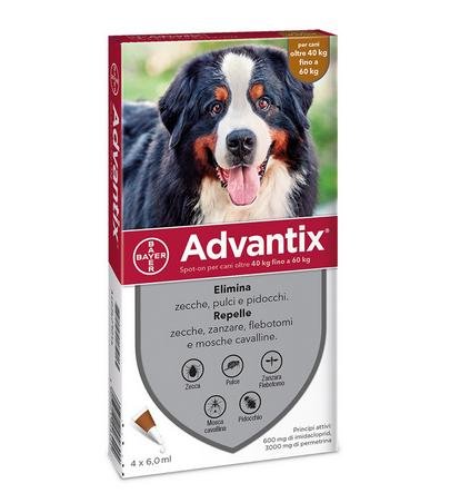 Advantix per cani � un antiparassitario spot-on (in gocce per uso esterno) specifico per il cane che offre ampia protezione contro pulci, zecche, zanzare, pappataci, pidocchi e mosca cavallina. Advantix � un prodotto frutto della combinazione di due principi attivi, che agisce come antiparassitario con azione insetticida, acaricida e come repellente.