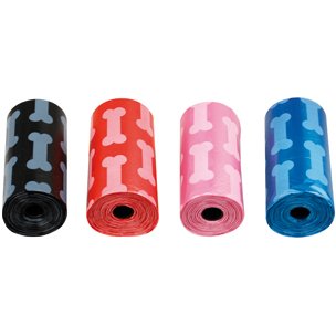 Confezione da 4 rotoli colorati e decorati (come immagine) ogni rotolo contiene 15 sacchetti igienici