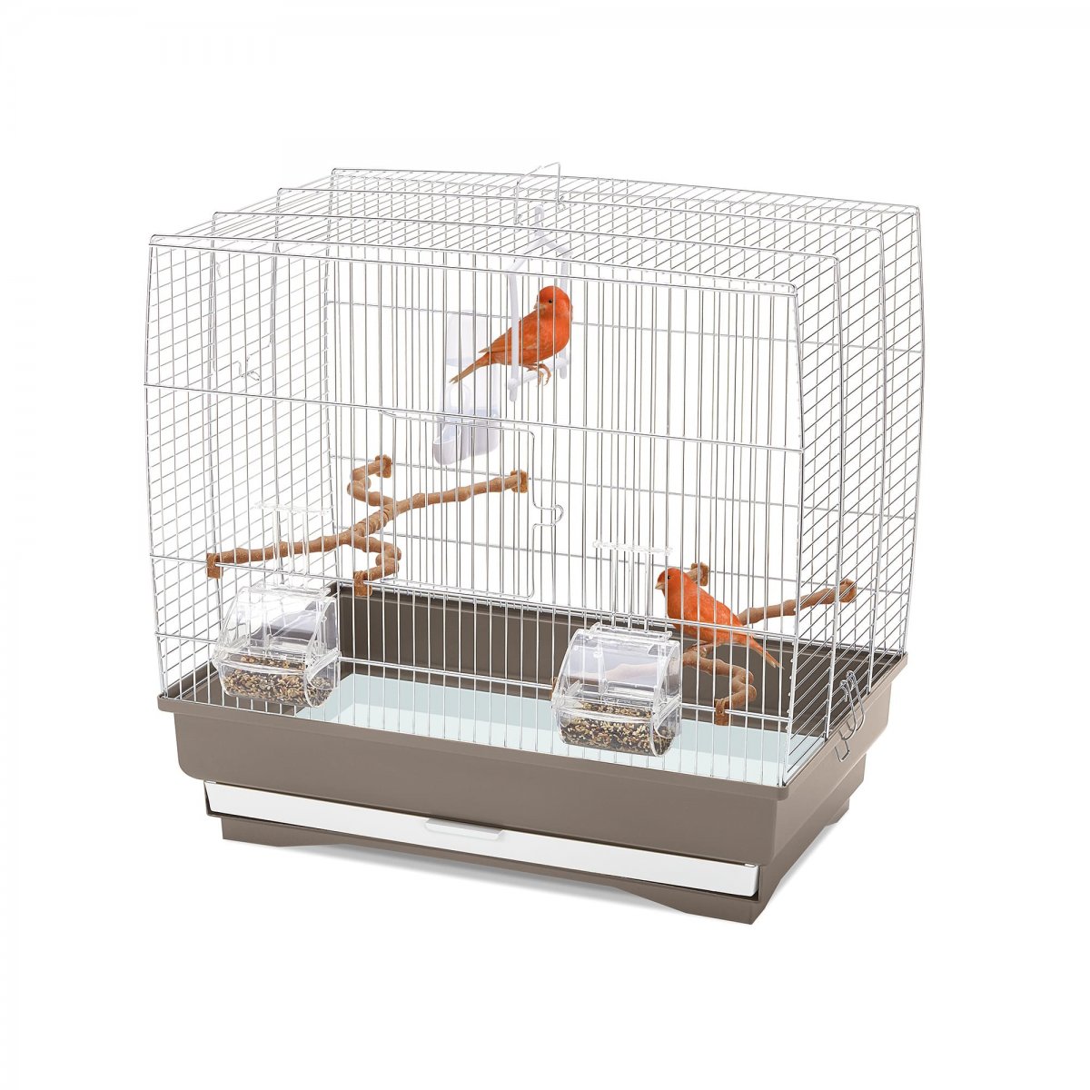 Irene 3 � una gabbia essenziale di medie dimensioni dalla base rettangolare con robusto fondo in plastica colore tortora abbinato a struttura in rete zincata. E� perfetta per accogliere canarini e piccoli esotici, grazie anche agli accessori indispensabile per offrire il massimo comfort. Inclusi troverete due mangiatoie Mia, un beverino Tweety 100, due posatoi a forma di ramo e un�altalena gioco. La manutenzione e la pulizia risulteranno facilitate dal cassetto estraibile sul fondo e dalle due aperture una frontale e l�altra laterale.