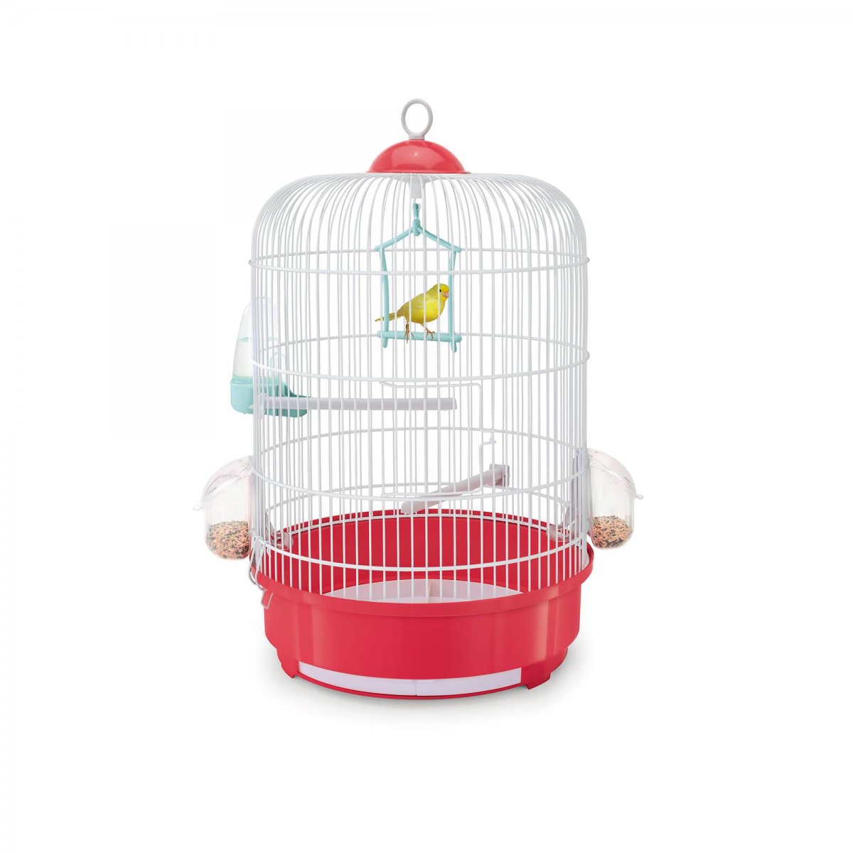 Pratica ed elegante, Milly � una gabbia rotonda di piccole dimensioni per canarini e altri piccoli uccelli. La struttura in rete metallica bianca � abbinata al fondo in plastica color rosso, mentre quella ottonata al fondo color marrone. � dotata di due aperture con comodo gancio di chiusura per accedere alla gabbia in sicurezza. L�altalena, due posatoi, un beverino Tweety 100 e due mangiatoie Star, facilmente riempibili di cibo dall�esterno, completano questa bella gabbia, rendendola il luogo ideale per accogliere i tuoi piccoli volatili. La pulizia della gabbia � facilitata da due piccoli cassetti estraibili.