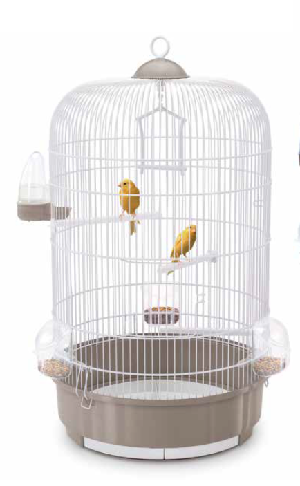 Luna � una gabbia rotonda per canarini e piccoli uccelli dalle dimensioni medie, disponibile nelle colorazioni della rete, bianca abbinata al fondo in plastica color tortora e rete ottonata con il fondo marrone. � dotata di due aperture con comodo gancio di chiusura per accedere alla gabbia in sicurezza. Questa piacevole gabbia viene fornita completa di accessori quali: un�altalena, tre posatoi, un beverino Tweety 100 e due mangiatoie Star in plastica trasparente, facilmente riempibili di cibo dall�esterno. La manutenzione e pulizia della gabbia risulter� facilitata dai due comodi cassetti estraibili.