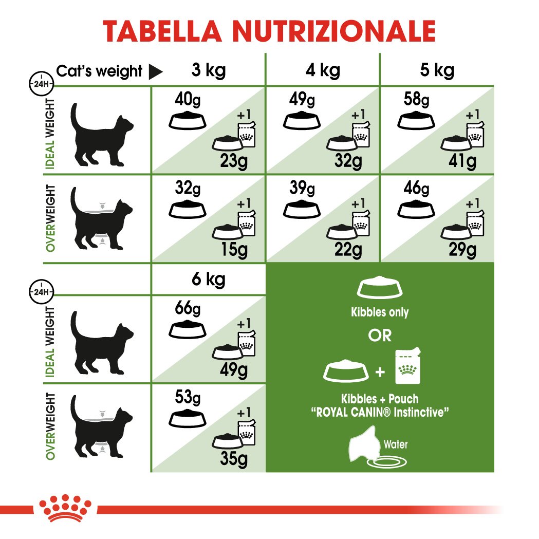 Acidi grassi Omega 6 3.8% Acido linoleico 3.6% Calcio 1.1% Cloruro 0.8% Fibre grezze 2.3% Grassi greggi 20.0% Proteine gregge 30.0% Taurina 0.28% Acidi grassi Omega 3 0.82% Acido arachidonico 1.0% Amido 31.0% Ceneri gregge 6.0% Fosforo 1.1% Magnesio 0.9% Sodio 0.6%.