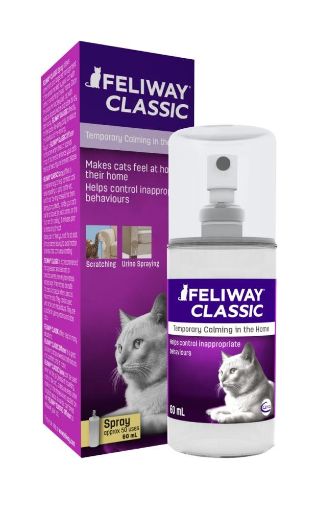 Feliway® è l’analogo di sintesi dei feromoni facciali usati dai gatti per marcare il loro territorio per sentirsi sicuri e tranquilli.