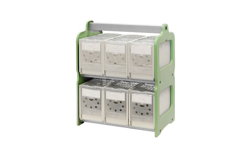 Trasportino a valigia con maniglia e con 6 secondini medi completi.