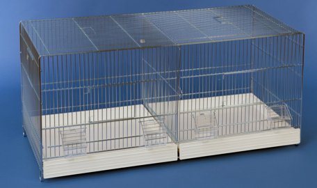 Gabbia in ferro totalmente prodotta in italia e particolarmente indicata per l'allevamento e la cova, zincata con fondo in plastica comprensivi di separazione mobile, di 4 Mangiatoie esterne e 4 posatoi e come optional griglia di separazione sul fondo per evitare che l'uccellino vada a mangiare lo sporco nel fondo.
