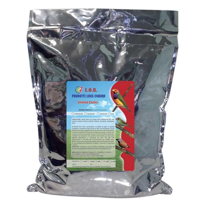 Unifeed esotici: mangime composto per uccelli esotici granivori quali Estrildidi e Ploceidi (diamanti, esotici africani/asiatici, tessitori, padda, ecc.)