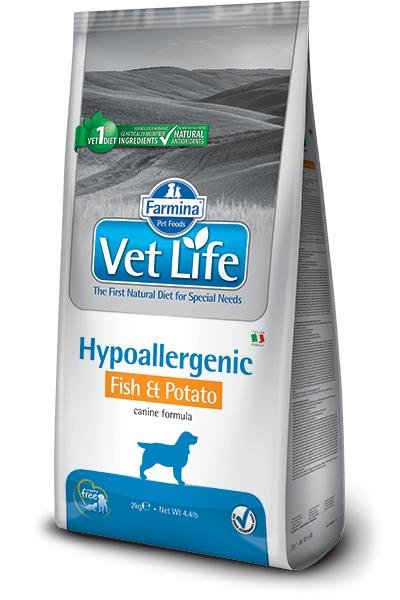 Farmina Vet Life Hypoallergenic è un alimento dietetico completo per cani indicato per la riduzione delle intolleranze alimentari. Consigliato anche come coadiuvante nel supporto della funzione trofica della cute e dei suoi annessi: occhio, orecchio, sacche anali. Meccanismo d’azione: Le reazioni avverse sono spesso dovute a residui presenti negli alimenti (antibiotici, antiparassitari, additivi, coloranti, conservanti vari) verso i quali il soggetto diviene sensibile. Farmina Vet Life Hypoallergenic Egg & Rice contiene come unica fonte proteica l'uovo, alimento caratterizzato dall'elevato valore biologico e alta digeribilità. Unica fonte d’amido è costituita dal riso. Inoltre il tenore contenuto in proteine, rafforza il potere ipo-allergenico del prodotto. L'elevata concentrazione in acidi grassi essenziali, contribuisce alla riduzione dei processi infiammatori a carico di cute e annessi cutanei.