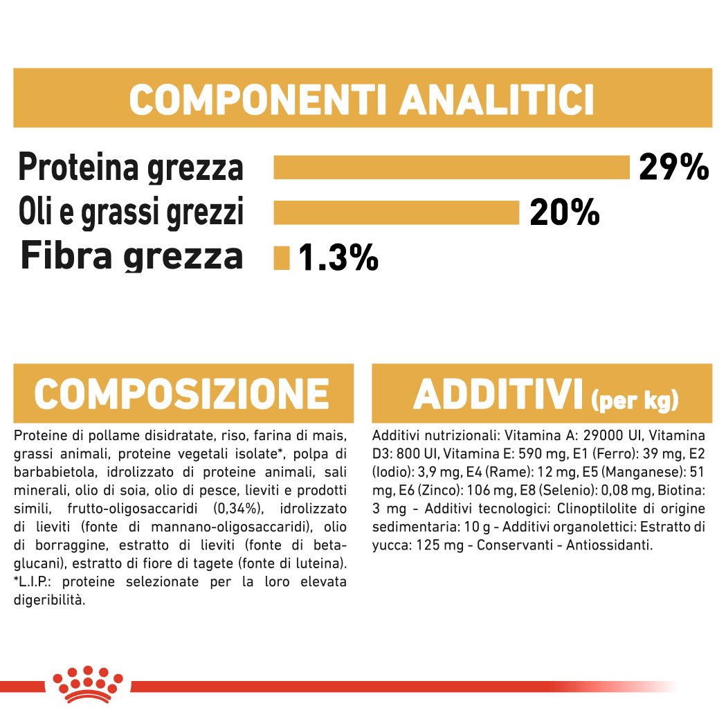 Garantisce una sicurezza digestiva ottimale ed una flora intestinale bilanciata per il cucciolo di Yorkshire Terrier.