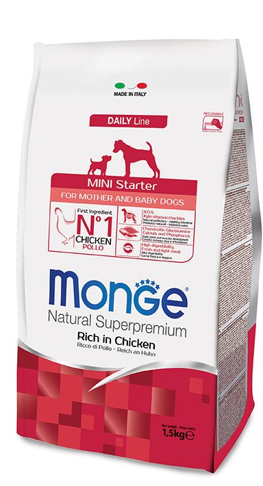 Le crocchette Monge Natural Superpremium Mini Starter con Pollo sono un alimento completo per madre gestante e allattante e cuccioli di piccola taglia durante lo svezzamento.