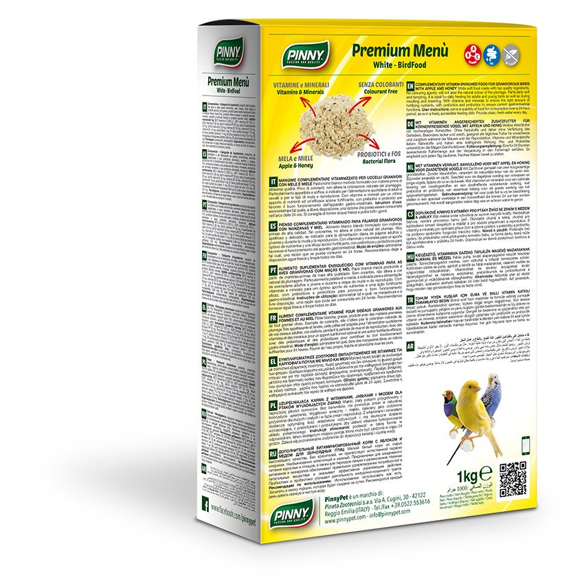 colorazione naturale del piumaggio. Particolarmente appetibile e soffice, � indicato per l'alimentazione quotidiana di adulti e novelli e per le fasi di muta e riproduzione. Con vitamine e minerali per un ottimo apporto di nutrienti ed