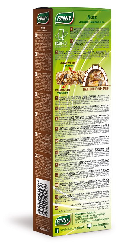 Stick croccante, ricco di frutta secca e cereali selezionati. Gustoso e divertente, cotto in forno in maniera naturale e tradizionale, arricchito con vitamine. Ottimo per l'abrasione dei denti, privo di coloranti e conservanti.