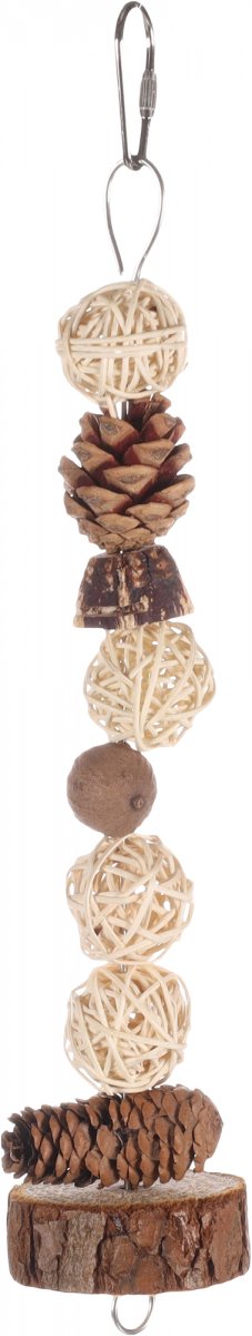 Il giocattolo per parrocchetti Biru è pensato per offrire al tuo pappagallino un’attività naturale e divertente, ideale per stimolare la curiosità e l’istinto di masticazione. Realizzato con materiali sicuri come pigne, rattan e legno di mogano, aggiunge varietà e arricchimento all’ambiente della gabbia.