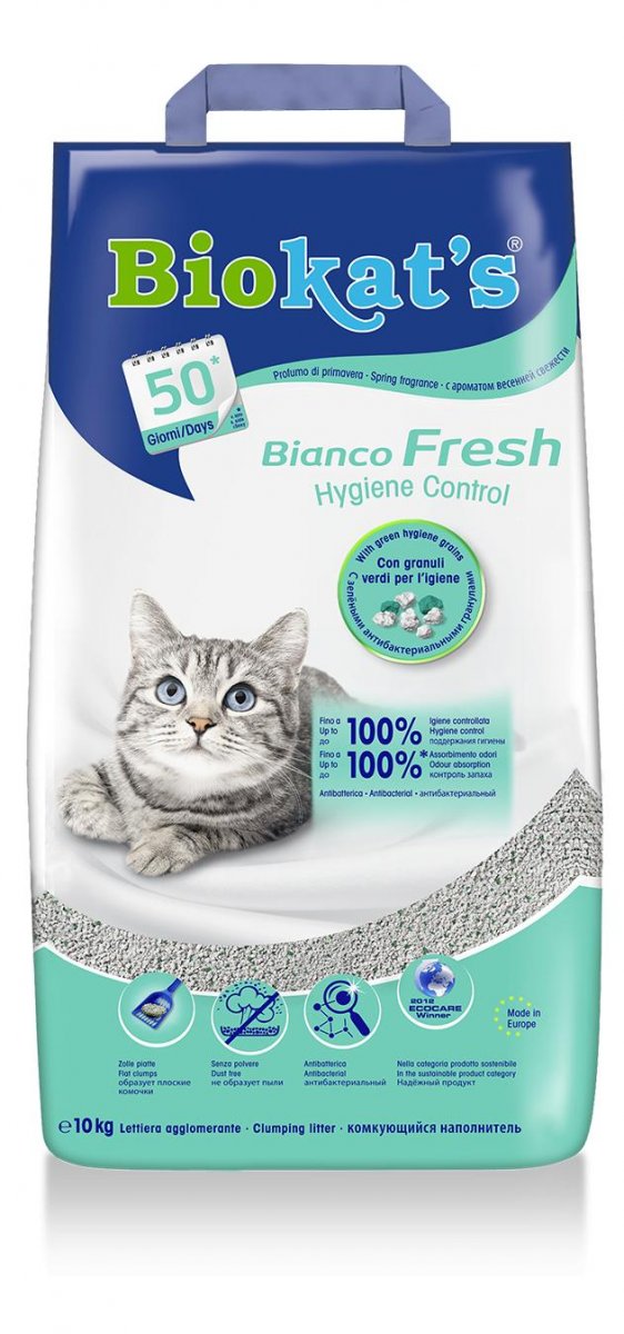 Biokat's Bianco Fresh è una lettiera agglomerante in argilla naturale.