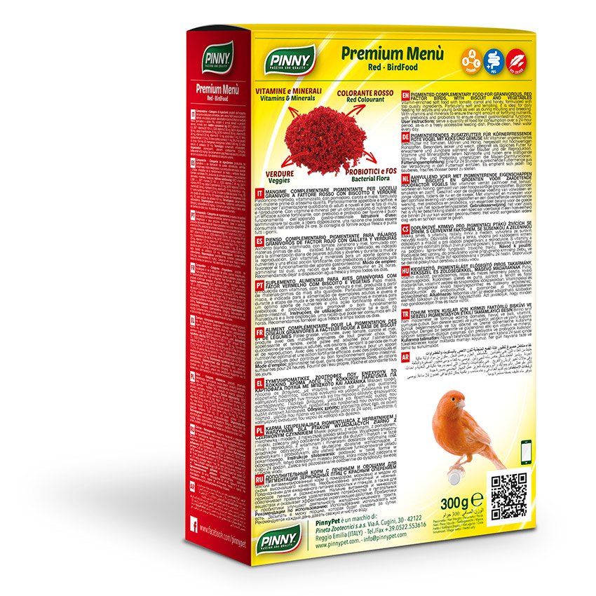 MANGIME COMPLEMENTARE VITAMINIZZATO PER UCCELLI GRANIVORI A FATTURE ROSSO CON BISCOTTO E VERDURE.
