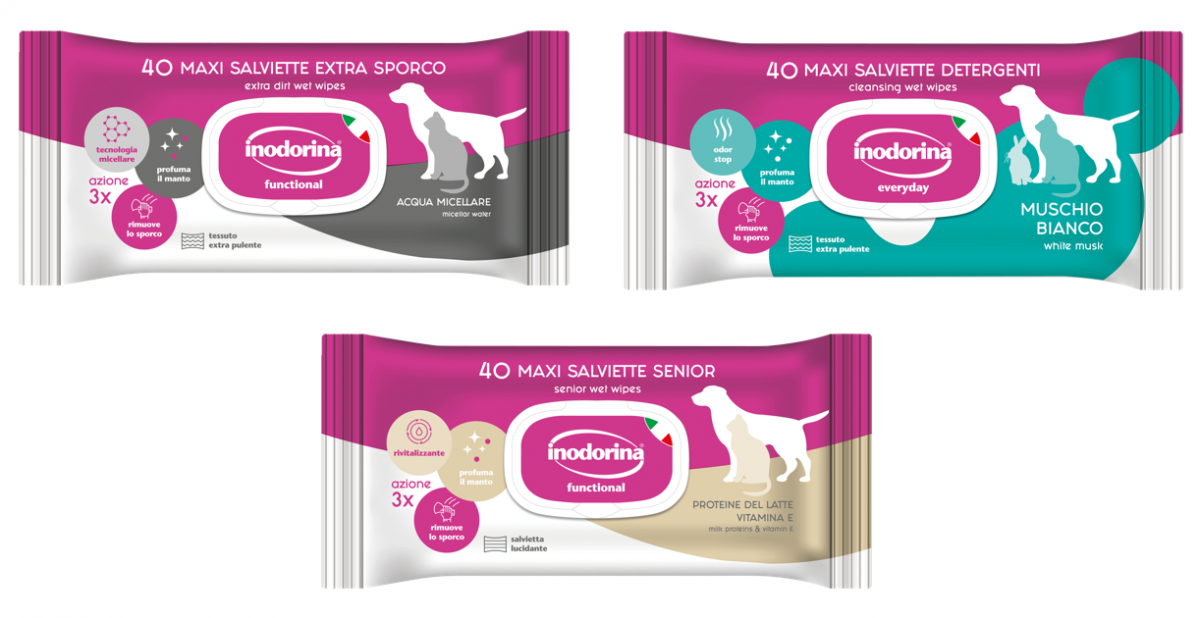 Le salviette Inodorina Refresh sono utilissime nei momenti di vita quotidiana con il nostro animale: prima di un viaggio in auto e al termine di una passeggiata o di una gita all’aperto. Inodorina Refresh è particolarmente indicata al momento del rientro in casa nei giorni di pioggia perché neutralizza le molecole di cattivo odore sul manto bagnato, lasciando il pelo deterso e profumato.