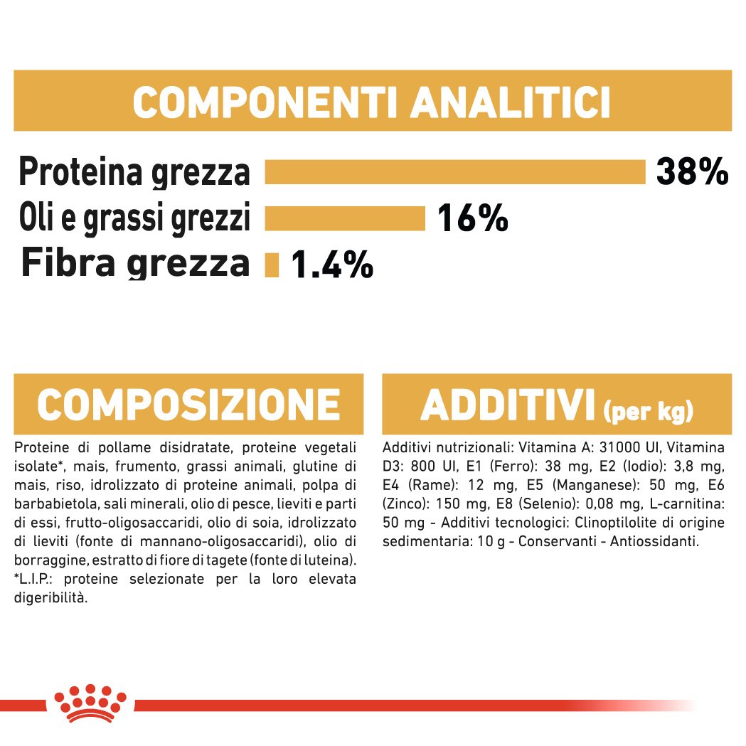 Ha una combinazione esclusiva di aminoacidi, vitamine ed acidi grassi specifici per contribuire alla salute della pelle e del pelo.