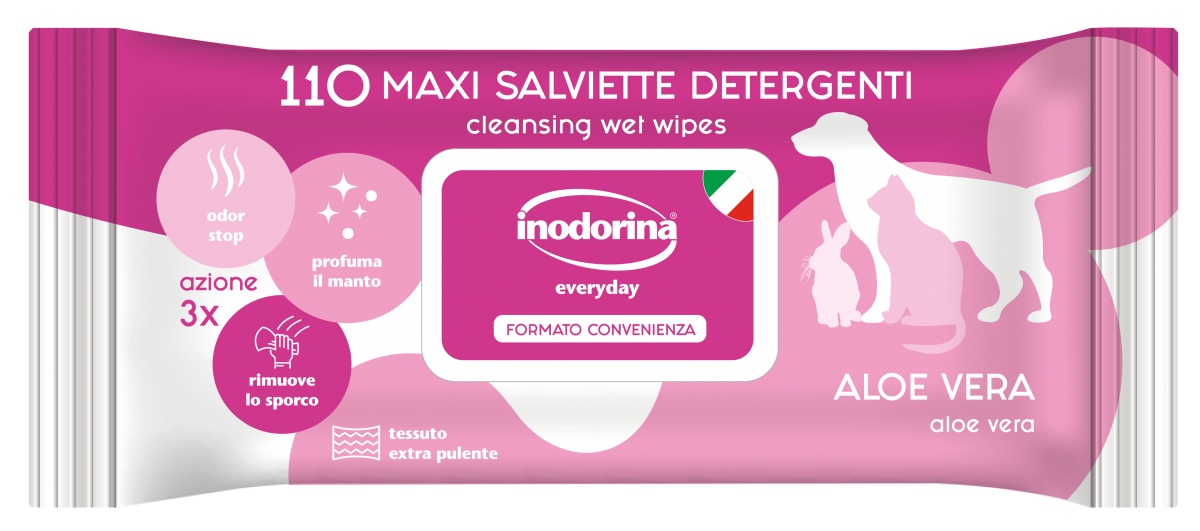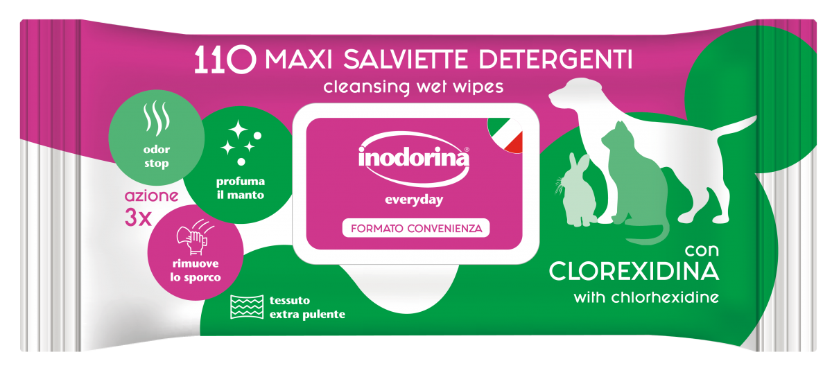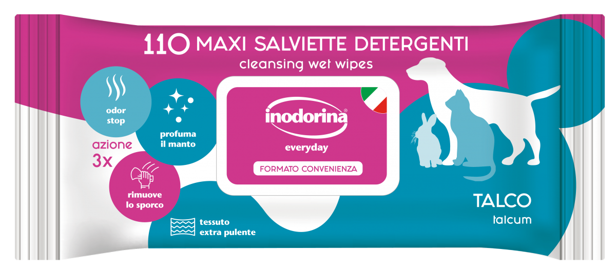 Le salviette Inodorina Refresh sono utilissime nei momenti di vita quotidiana con il nostro animale: prima di un viaggio in auto e al termine di una passeggiata o di una gita all’aperto. Inodorina Refresh è particolarmente indicata al momento del rientro in casa nei giorni di pioggia perché neutralizza le molecole di cattivo odore sul manto bagnato, lasciando il pelo deterso e profumato.