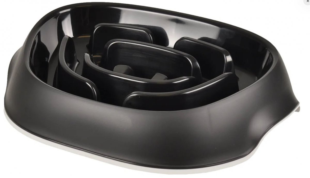 Gli ostacoli rialzati della ciotola inducono il cane a mangiare più lentamente perché deve raccogliere ogni pezzo uno alla volta.