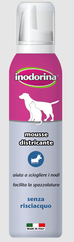 La mousse districante Inodorina è particolarmente indicata per trattare cani amanto lungo per districare il pelo ed agevolare la spazzolatura. Utilizzabile quotidianamente su pelo asciutto o bagnato, non necessita di risciacquo.