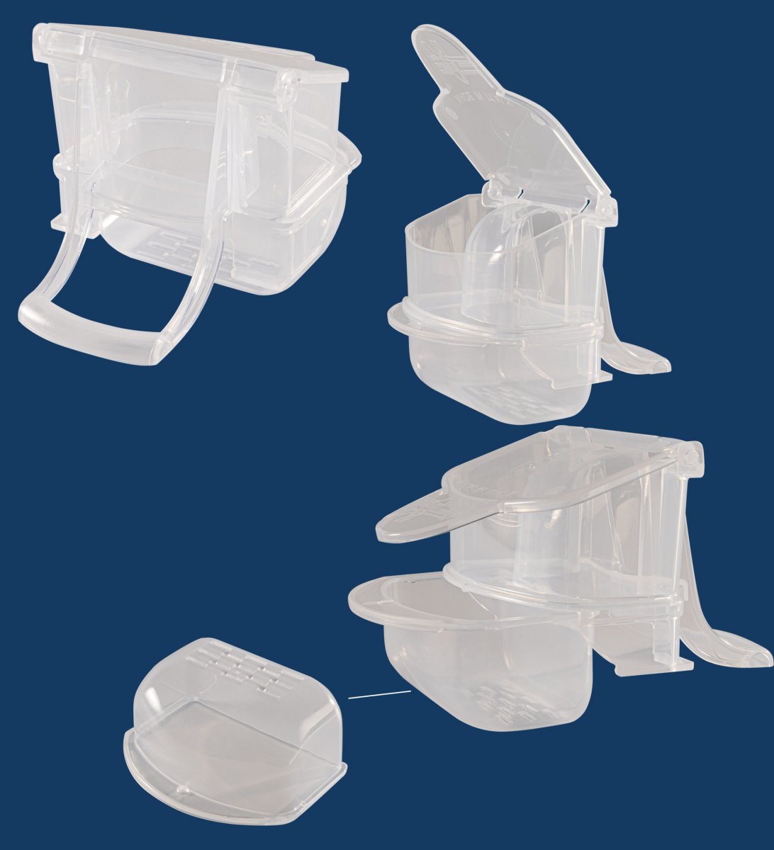 Il design è concepito perchè l’uccello non lasci scarti sul mangime e le feritoie sul fondo del cassetto fanno in modo che il mangime sia sempre libero dalla polvere.