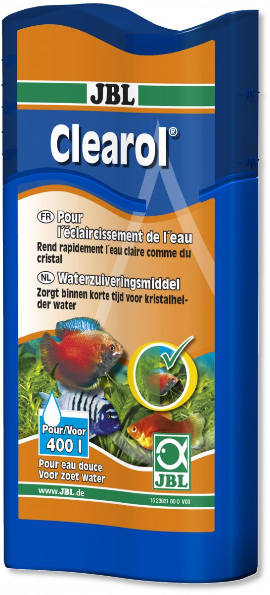 JBL Clearol elimina gli intorbidimenti più fini, normalmente non catturati dall'acquario, come ad esempio particelle sospese, alghe, intorbidimenti batterici ecc.