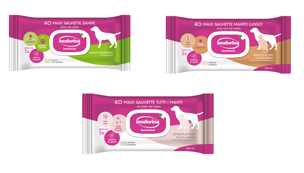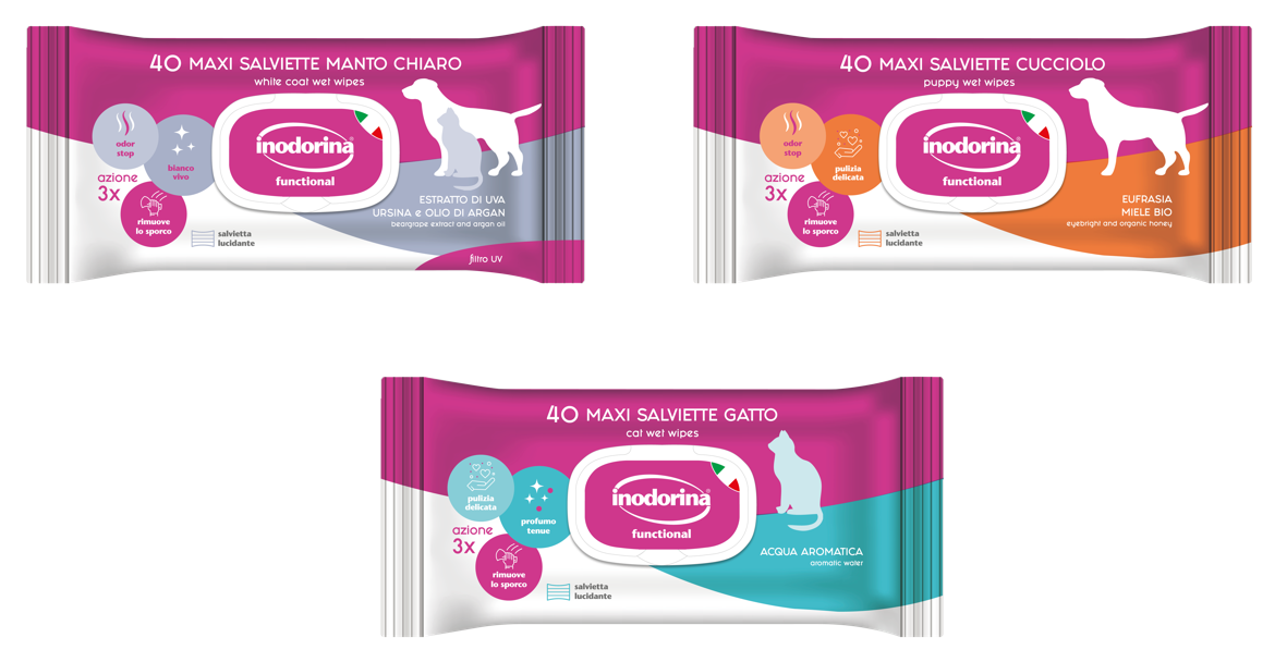 Le salviette Inodorina Refresh sono utilissime nei momenti di vita quotidiana con il nostro animale: prima di un viaggio in auto e al termine di una passeggiata o di una gita all’aperto. Inodorina Refresh è particolarmente indicata al momento del rientro in casa nei giorni di pioggia perché neutralizza le molecole di cattivo odore sul manto bagnato, lasciando il pelo deterso e profumato.