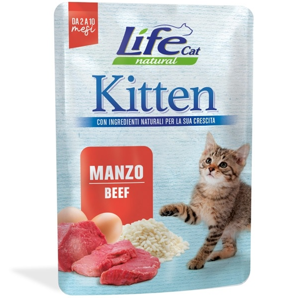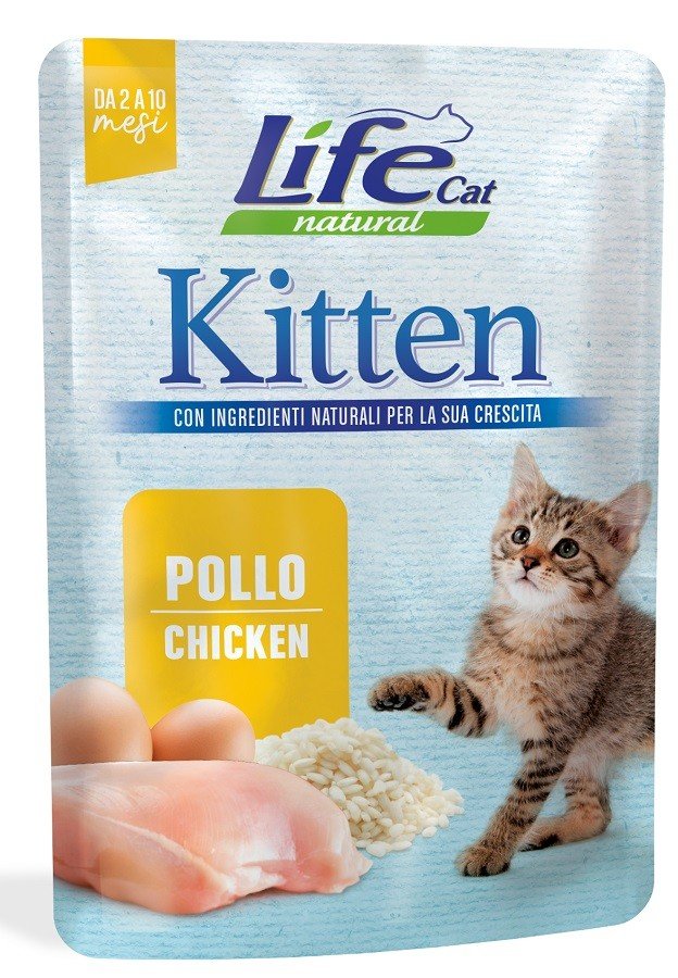 Alimento per gattini. Somministrare fino a 2 buste al giorno, in associazione con alimenti umidi o secchi per ottenere una razione giornaliera completa. Servire a temperatura ambiente.