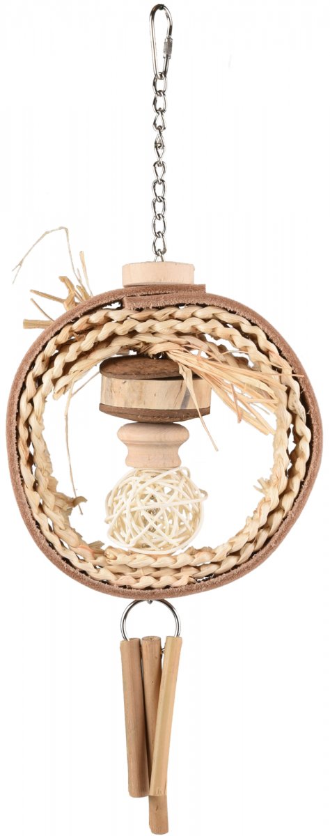 Il pendente per gabbia Duma Hippie è progettato per offrire al tuo uccellino un’attività stimolante e naturale. Realizzato con materiali come foglie di mais, legno, cuoio e rattan, combina diverse texture e forme per favorire il gioco, la masticazione e l’esplorazione. La catena aggiunge un elemento oscillante che aumenta il divertimento e l’interazione.