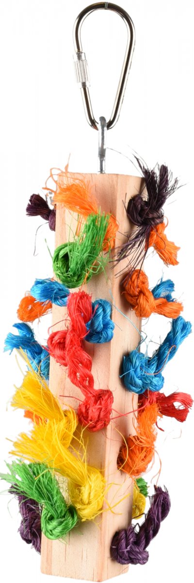 Il pendente per gabbia Rainbow Dio è pensato per offrire al tuo uccellino un’attività stimolante e divertente. Realizzato in legno e sisal, combina diverse texture e forme, come cubi e corde annodate, per favorire l’esplorazione e la masticazione. Adatto per uccelli piccoli e medi, si fissa facilmente alla gabbia grazie al pratico sistema di sospensione in metallo.