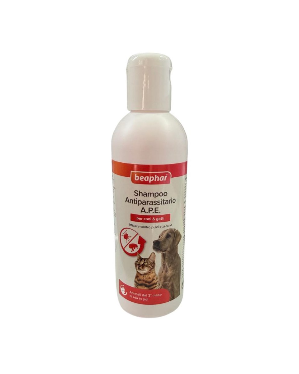 Beaphar Shampoo Antiparassitario A.P.E. è uno shampoo specifico per il trattamento delle infestazioni da pulci e zecche nel cane e nel gatto.