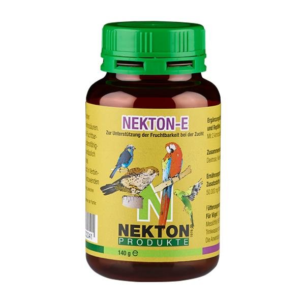 Nekton E contiene vitamina sotto forma di acetato di alfa-tocoferolo ed é consigliato per proteggere da difetti della struttura ossea, per produrre covate migliori, per prevenire degenerazioni delle ossa, per prevenire problemi al fegato e ai reni e per preparare gli uccelli allo stress della stagione di riproduzione.