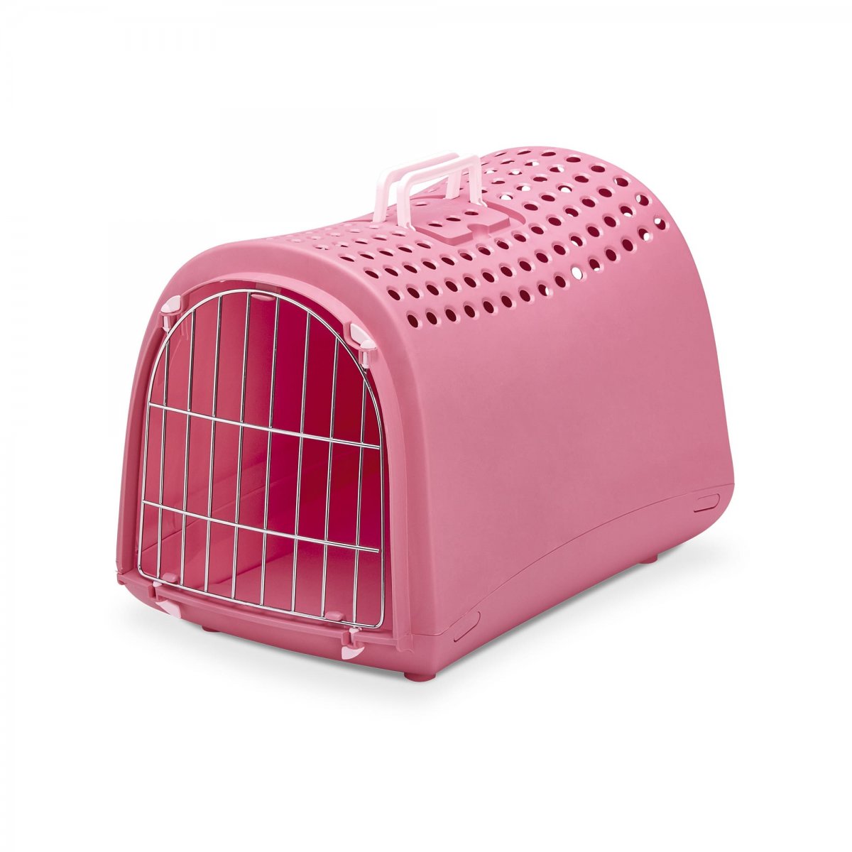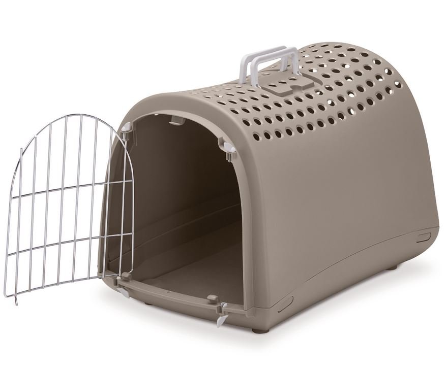 Trasportino in plastica per gatti e cani di taglia medio/piccola. Traforato per una maggiore areazione. Smontabile per favorire la pulizia e con la grata anteriore in ferro. Colori assortiti.