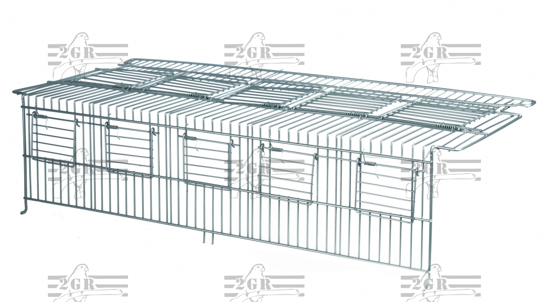 Trasportino fino a 5 posti, con mangiatoie e beverini esterni e 5 sportelli nel retro del trasportino.