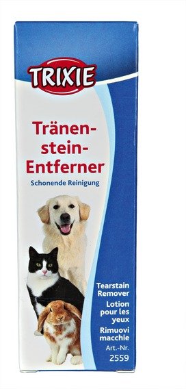 Rimuove le macchie che si formano sul pelo dalla lacrimazione, particolarmente indicato per animali a pelo lungo