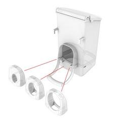 Questa mangiatoia è adatta a tutti i tipi di canarini ed esotici. Viene fornita con 3 riduzioni, in modo che l'allevatore possa scegliere quella più adatta ai soggetti da lui allevati.
