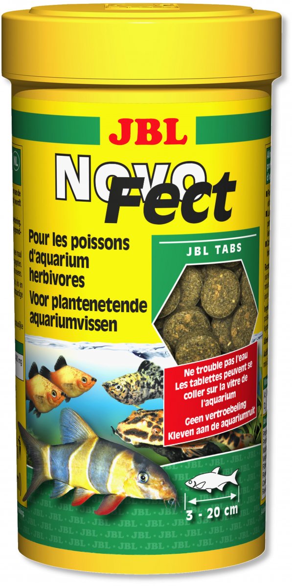JBL Novofect è un mangime in compresse, completo ed equilibrato, specifico per loricaridi, cobitidi ed altri pesci di fondo vegetariani: