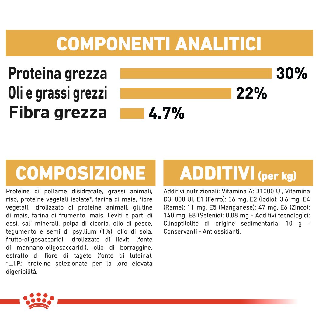 Fabbisogni nutrizionali: Il gatto Persiano ha alcune peculiarit� che vanno tenute presenti nella formulazione di un alimento specifico per questa razza: la particolare forma della crocchetta � progettata per facilitare la prensione, mentre il sistema Antihairball contribuisce all�eliminazione naturale dei boli di pelo.